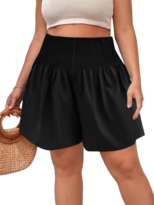 SOLY HUX Women's Shirred Elastic High Waisted Wide Leg Shorts