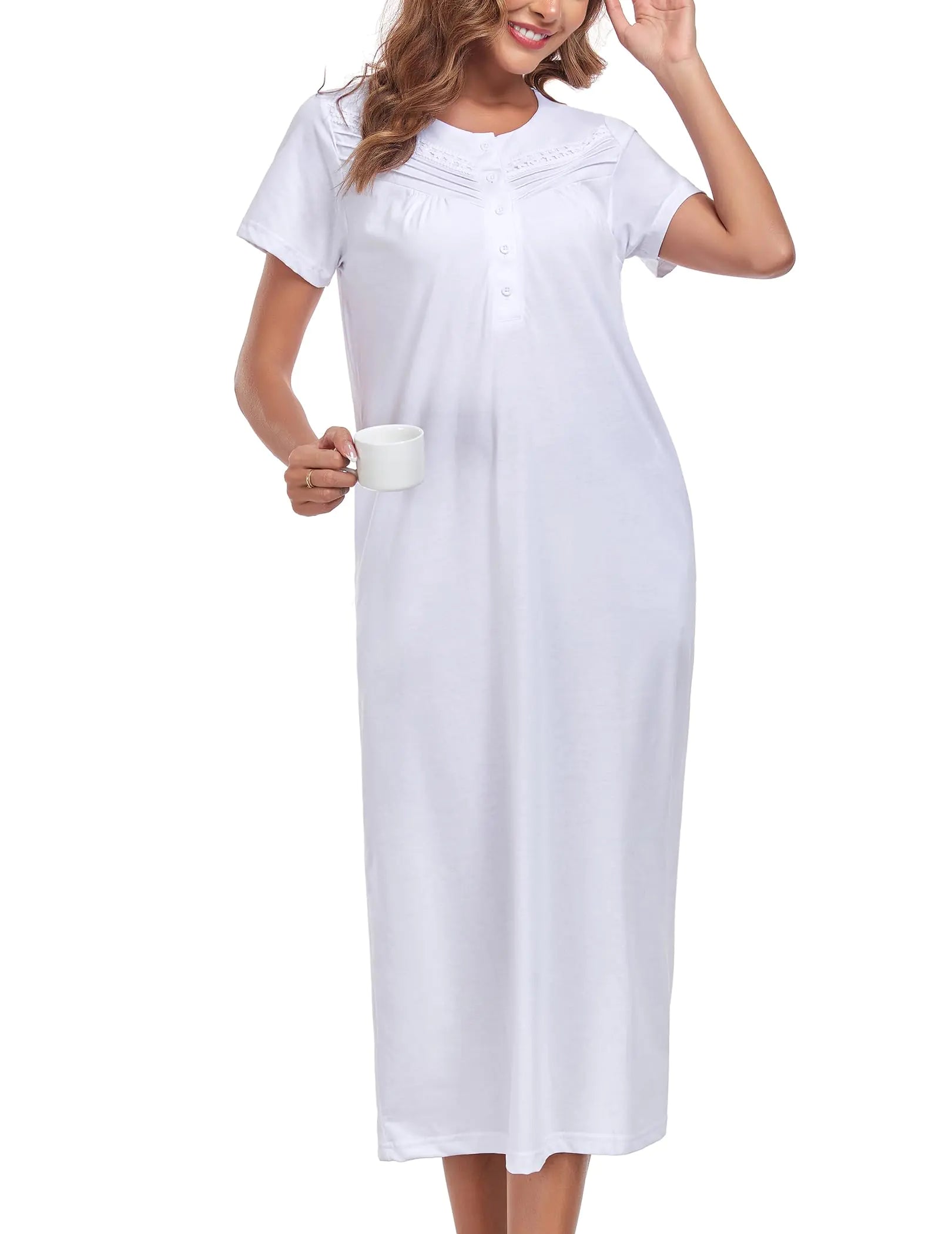Women Soft Cotton Sleep Shirts Long Nightdress White